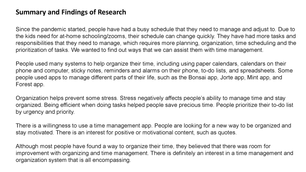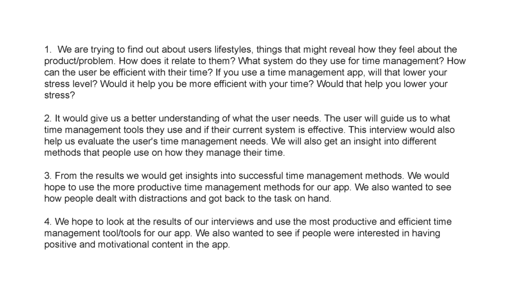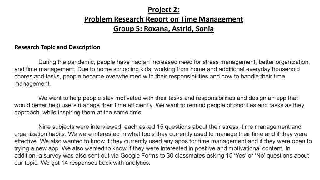 Creating a Time Management App based on Research: Problem Search Report/ Prototype and Maze Usability Testing Report